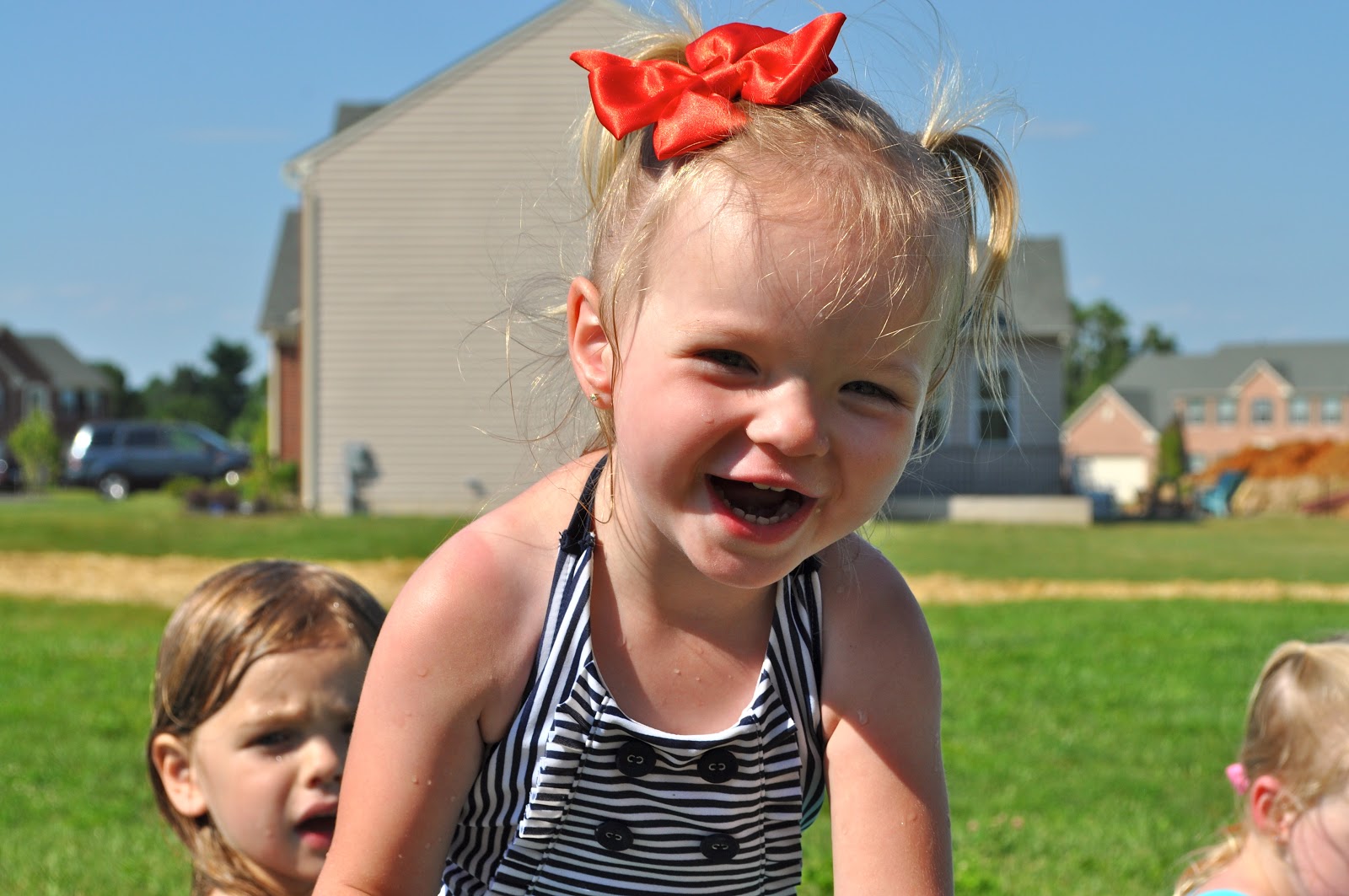 Sweet Julia turned 2! We celebrated with a S'more birthday party at her house. Sara put together quite the spread! The girls played in the pool and jumped on the trampoline while we got our S'more grub on! Julia is honestly the sweetest little girl. I love that girl so so much! Julia and I have this little thing we do whenever we are together..I tell her I LOVE her soooo much and I say,"Julia how much do I love you?" and she always smiles and replies by saying, "To the Moon and back!" and some times she says, "Everywhere" It's really cute, Julia always makes me laugh. It's crazy that Julia is already 2, time flies! Happy Birthday Julia!